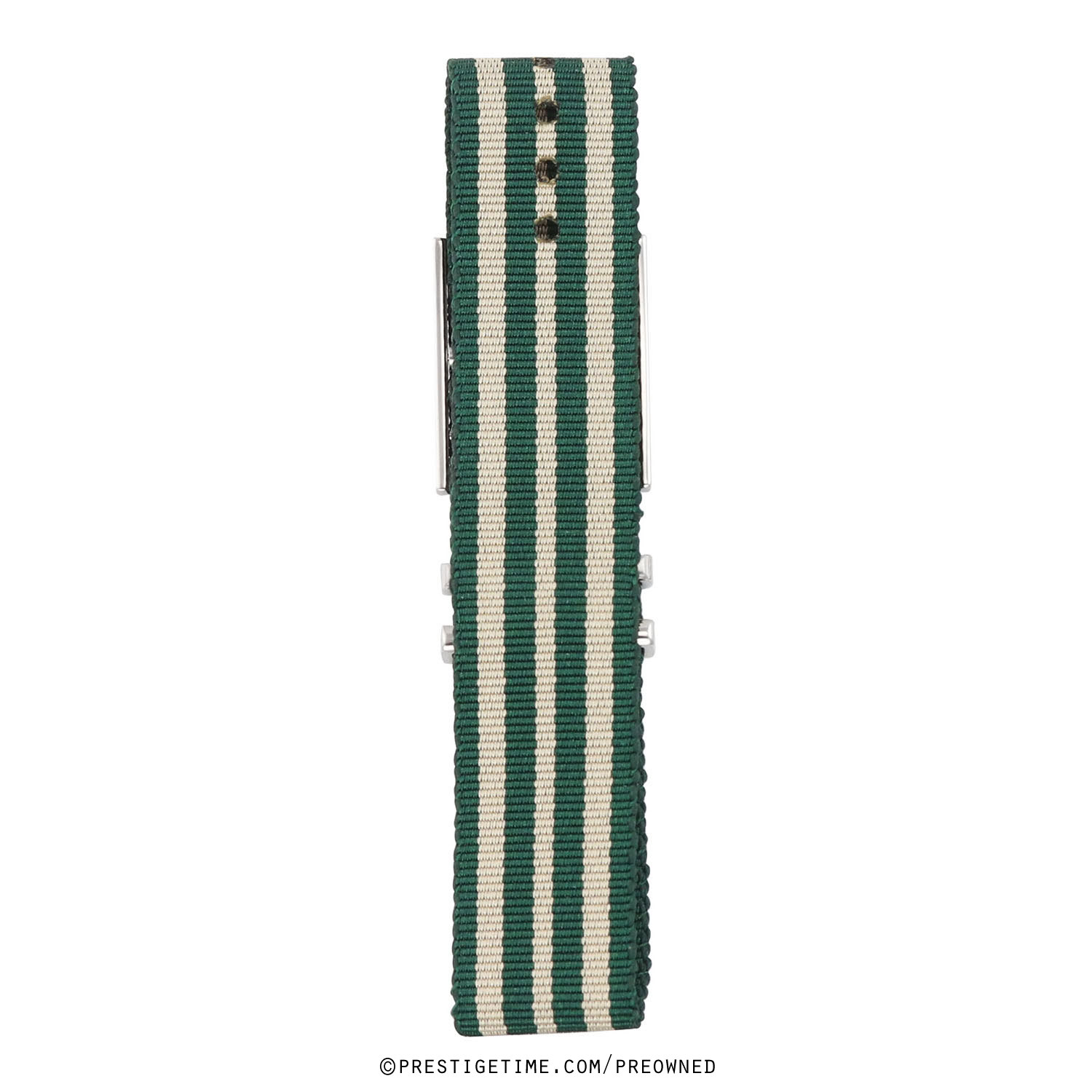 Genuine Tudor fabric green and tan striped NATO strap with stee buckle & keepers.
