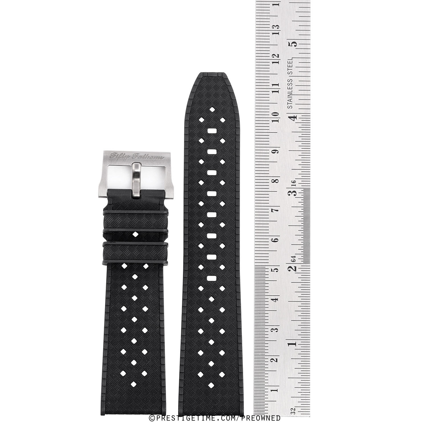 Genuine Blancpain black rubber strap with a titanium pin buckle for the 42.3mm Fifty Fathom watches.