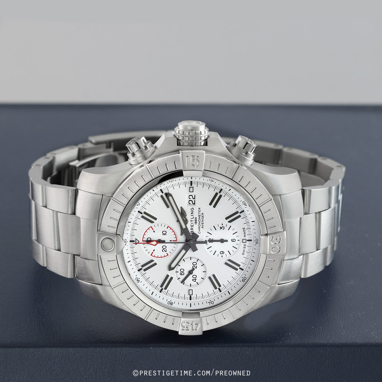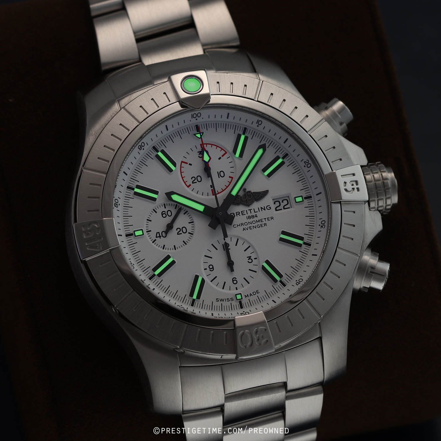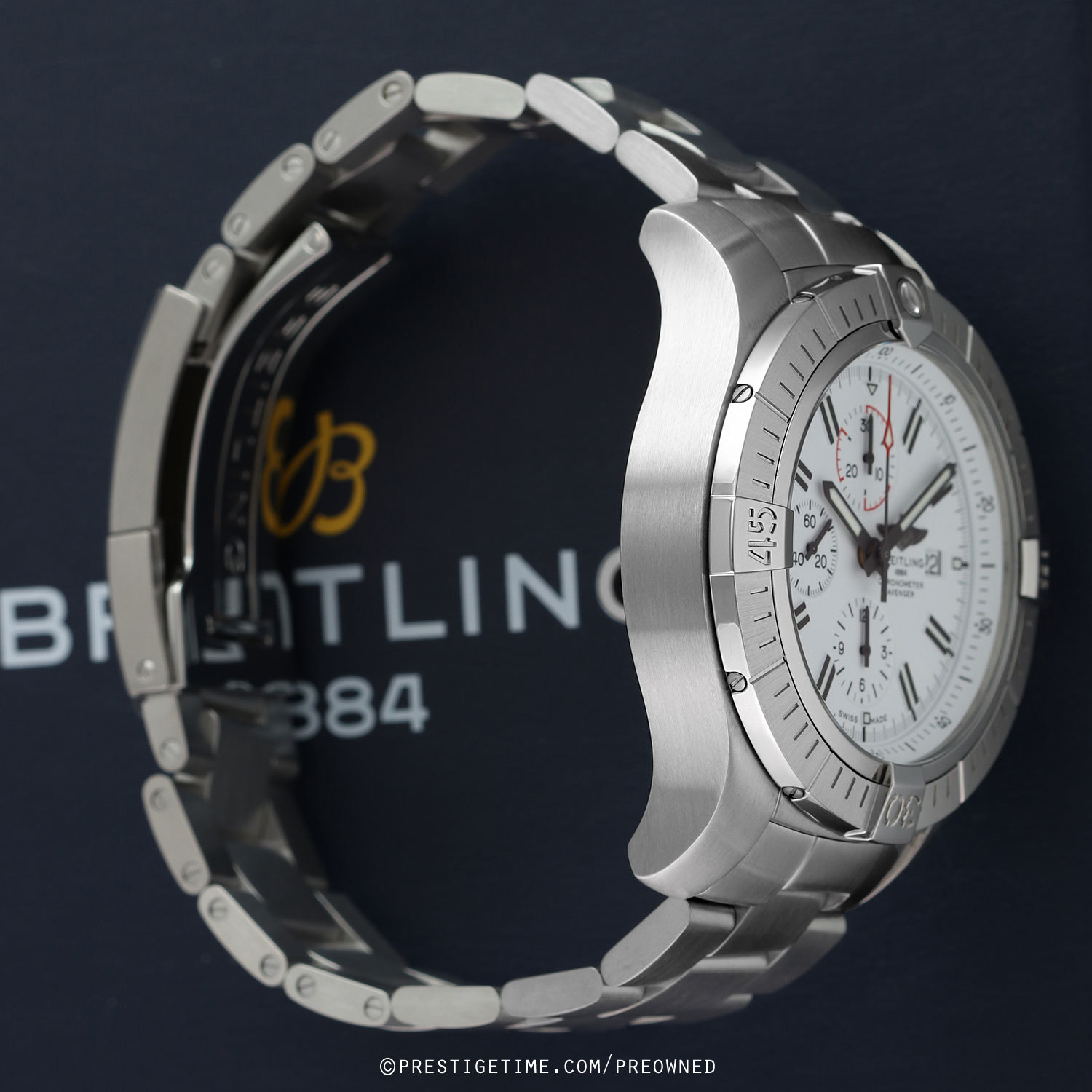 Movement: Powered by a Breitling COSC certified calibre 13 (base ETA/Valjoux 7750) which beats at 28,800 vph, contains 25 jewels, and has a power reserve of +/- 42 hours.
