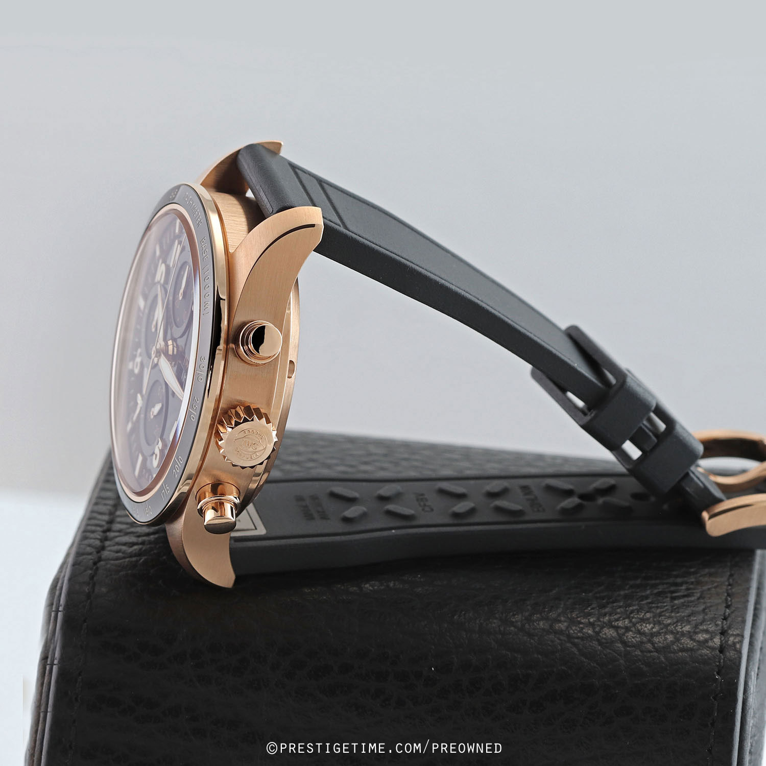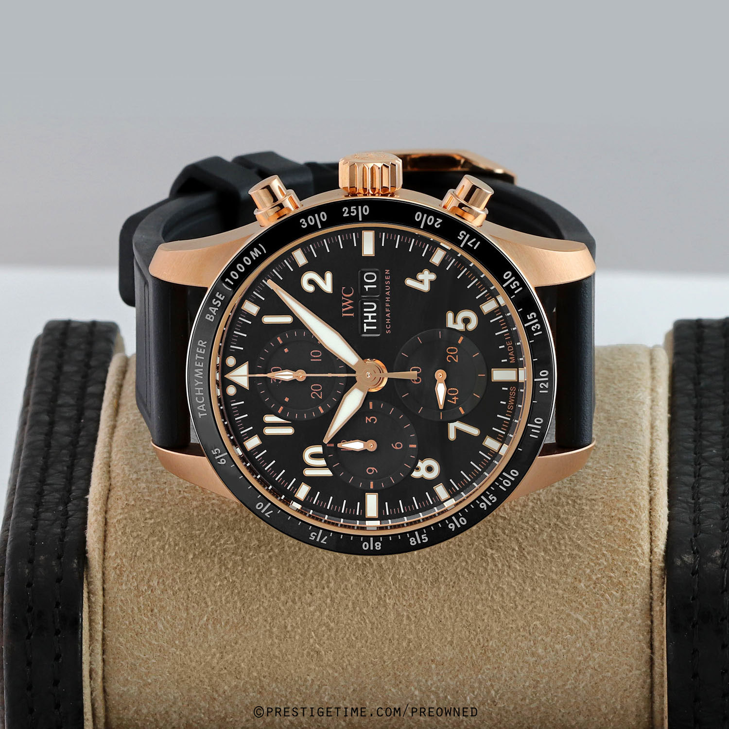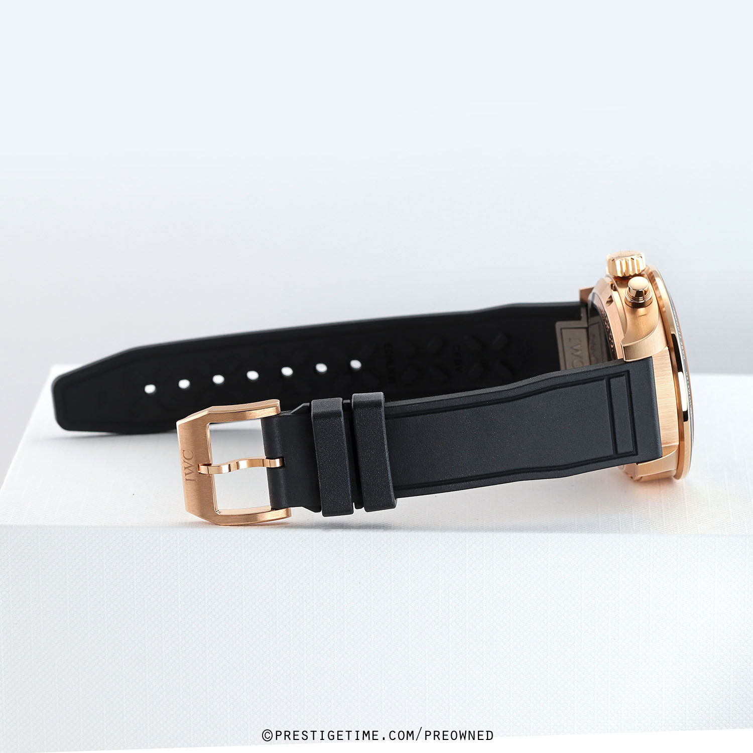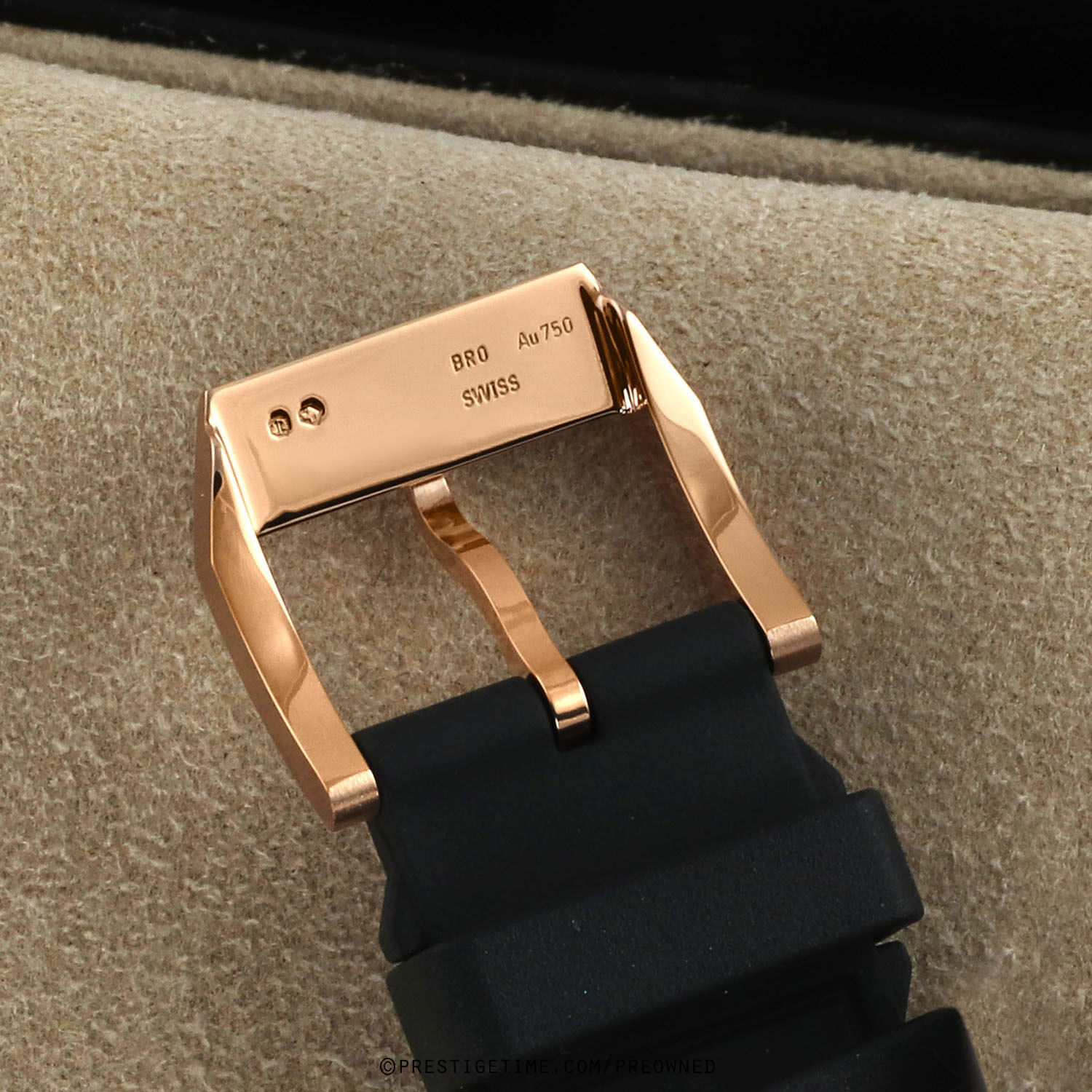 Strap: Fitted on its original IWC black rubber strap with a solid 18kt rose gold tang buckle. The strap is unworn, in near new condition with its full wear lifespan remaining. The straps features IWC's quick release EasX-CHANGE system allowing the change of straps without the need of tools.