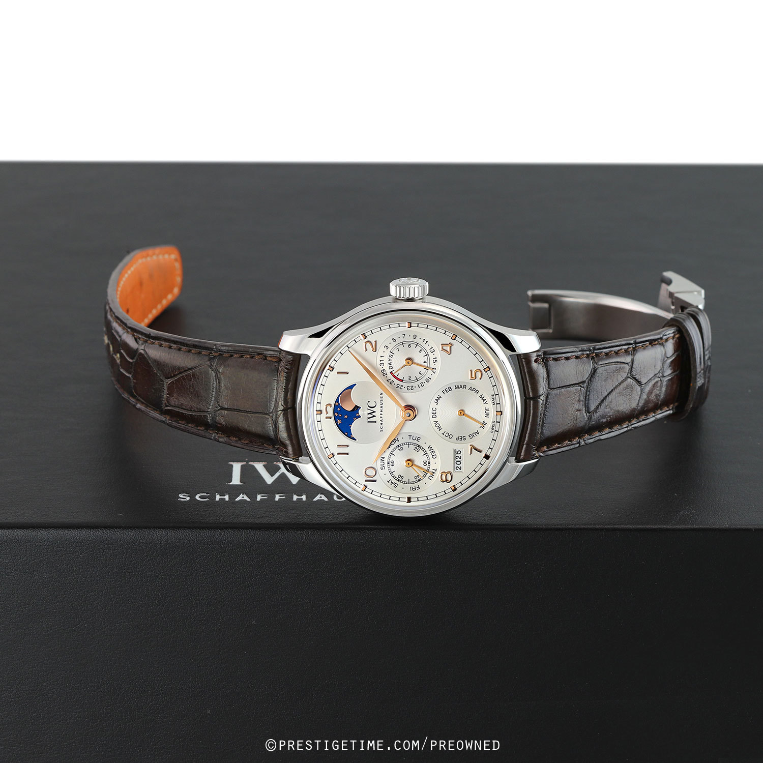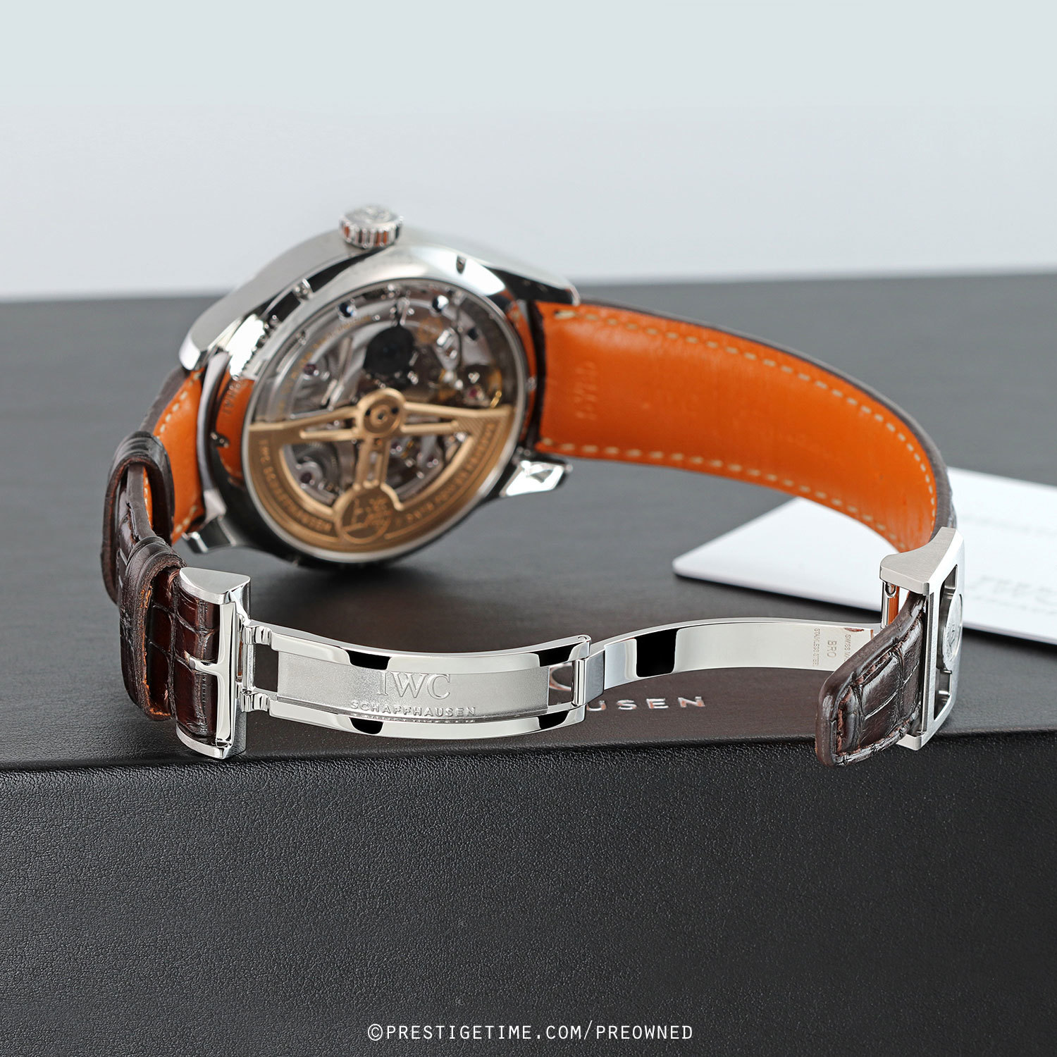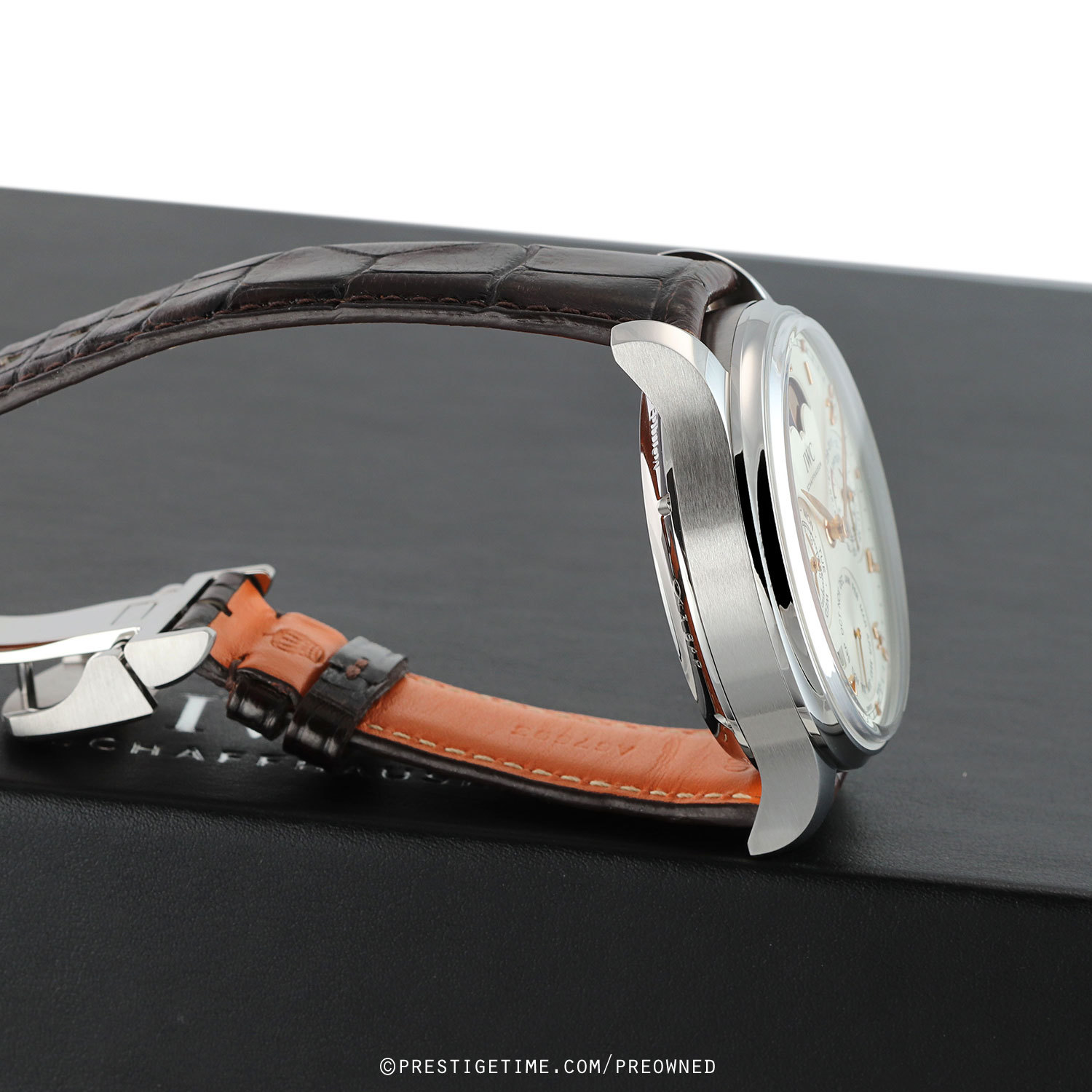 Strap: Fitted on its original IWC by Santoni brown alligator leather strap with Santoni's signature orange calfskin leather lining & a stainless steel deployant buckle. The strap is in excellent near new condition with plenty of its wear lifespan remaining. We would grade this strap in 95%+ condition.