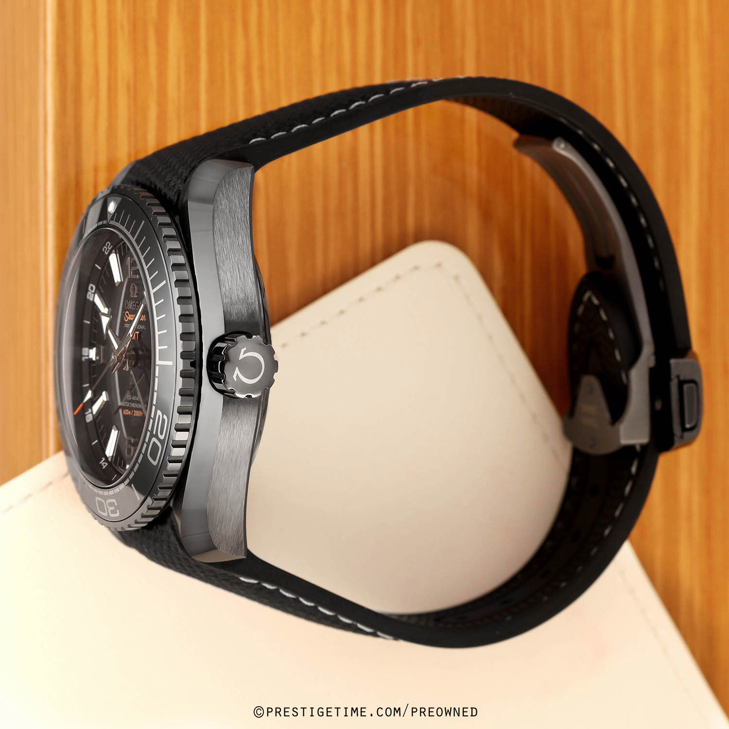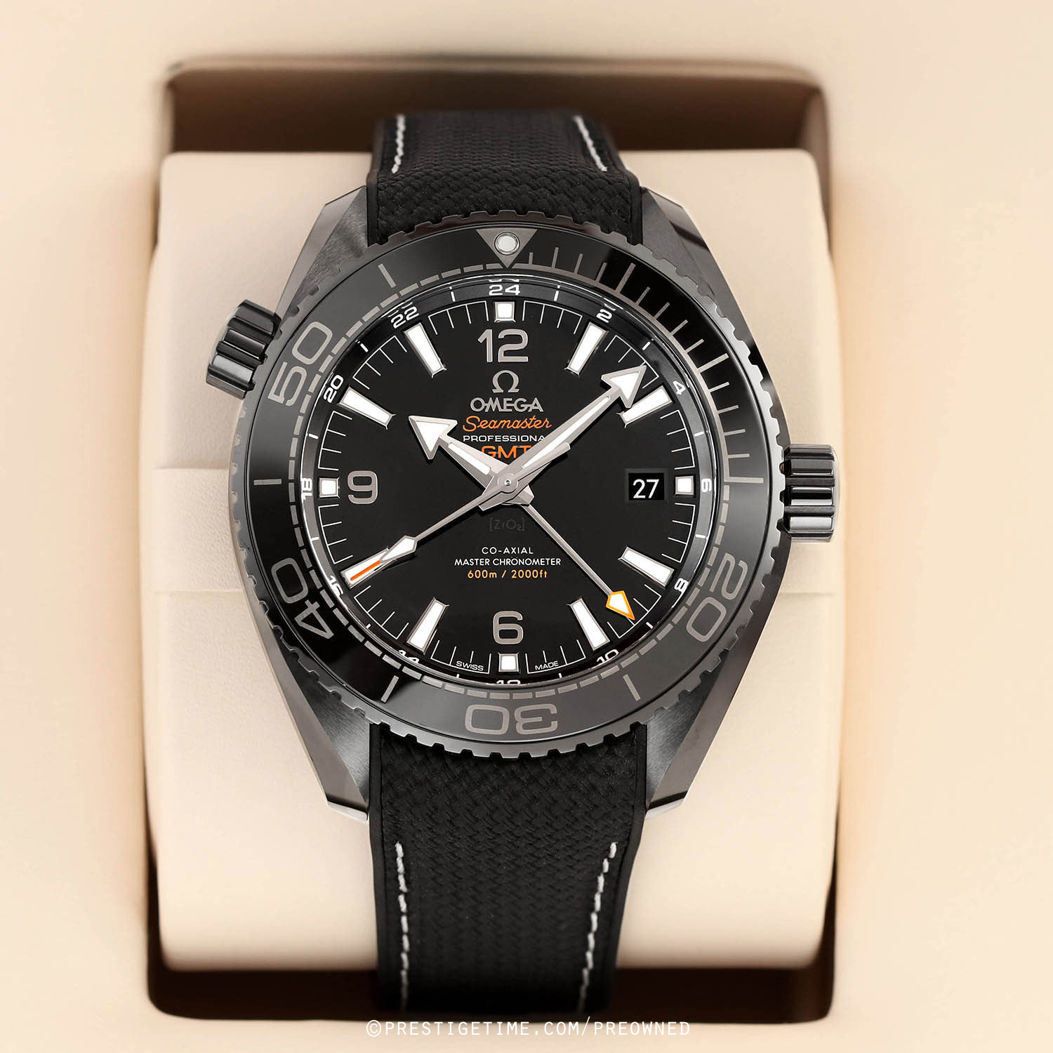 Strap: Fitted on its original black rubber with contrasting white stitching and with a black ceramic and titanium push button deployant buckle. The strap is in excellent near new condition, with the vast majority of its wear-lifespan remaining. We would grade the strap as in 97% condition.