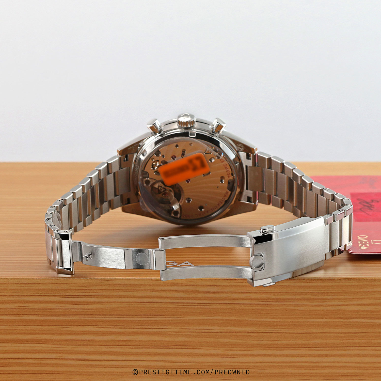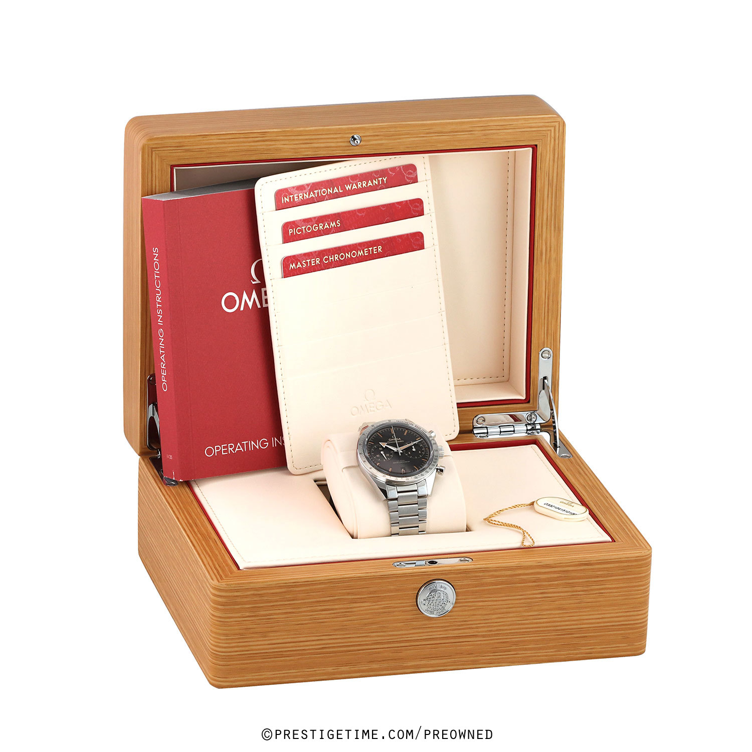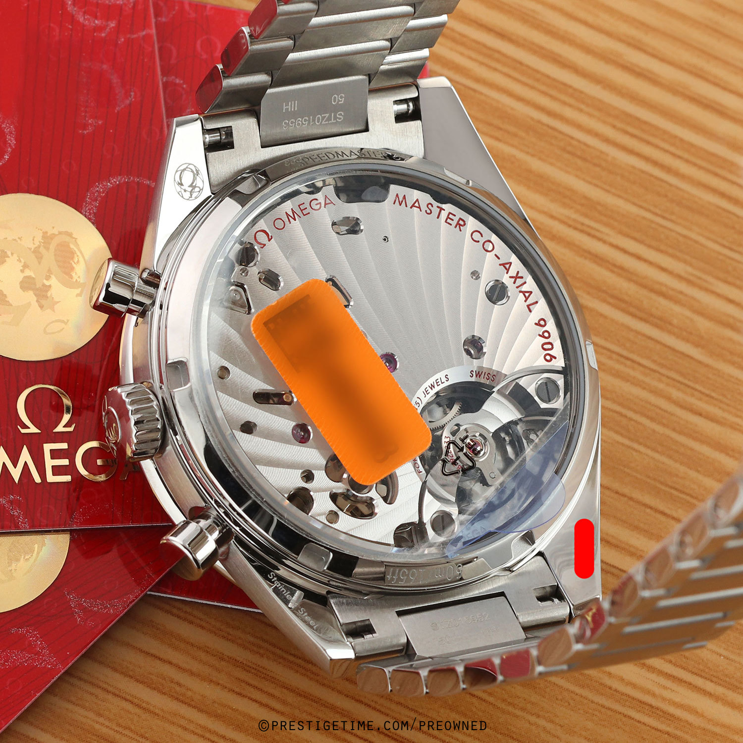 Movement: Powered by an Omega manual winding calibre Master Co-Axial 9906, beats at 28,800 vph (4Hz), contains 45 jewels & power reserve of +/- 60 hours. The movement is a Swiss Federal Institute of Metrology (METAS) certified Master-Chronometer. The METAS certification tests water resistance, precision and magnetic resistance to 15,000 gauss. Features Omega's Si14 silicon balance spring & Omega's Co-Axial Escapement. The back-plate is rhodium plated & decorated with Geneva waves in arabesque design.