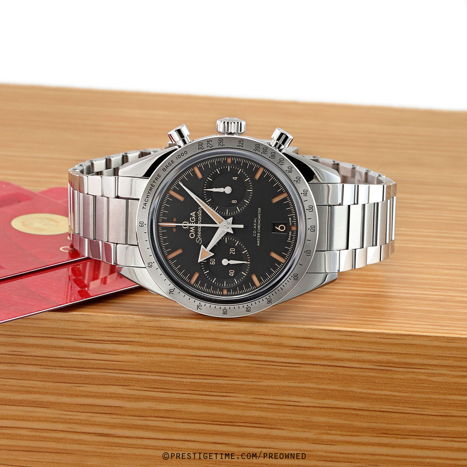 Case: Brushed & polished finished stainless steel case. Fixed position stainless steel bezel with a tachymeter scale. Domed sapphire crystal. Black dial with a very fine textured finish, stepped-down sub-dials. Sandwich construction dial with cut-out index hour marker and with vintage colored luminous backing. Polished hands. Broad-Arrow hour & minute hands with vintage colored luminous fill. Fine printed minutes/seconds & fractions of a second track. Small seconds sub-dial at 9 o'clock. Date window at 6 o'clock.