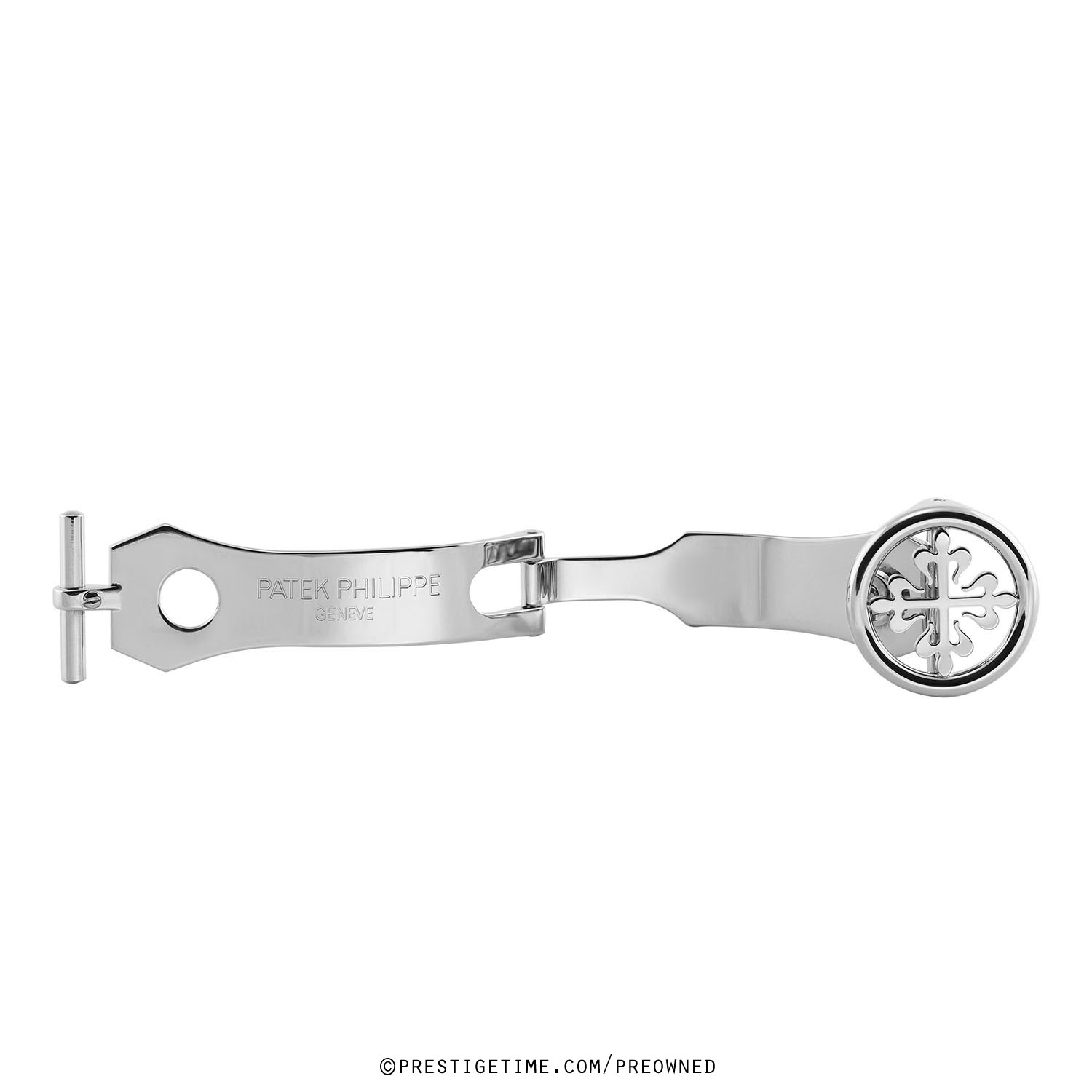 • Genuine Patek Philippe 18kt white gold deployant buckle.