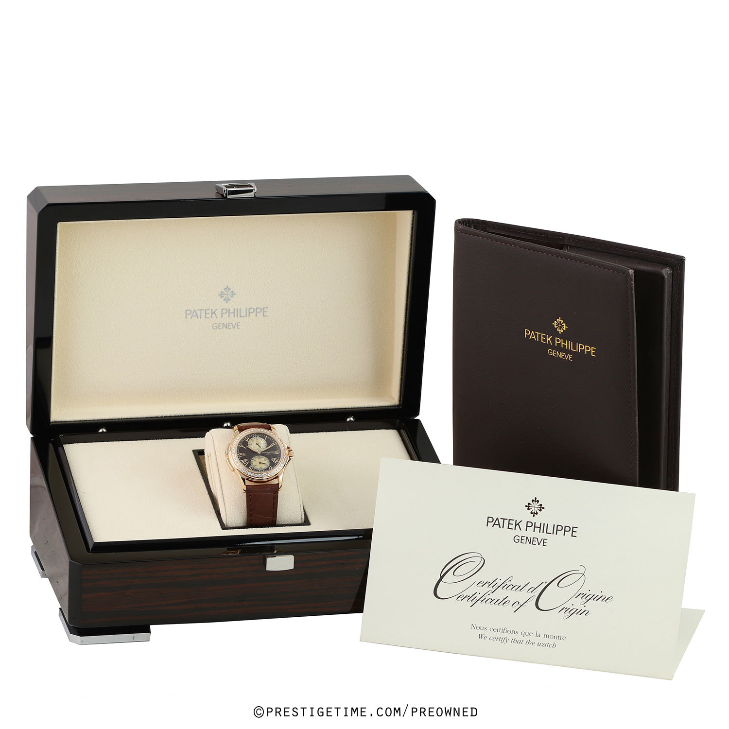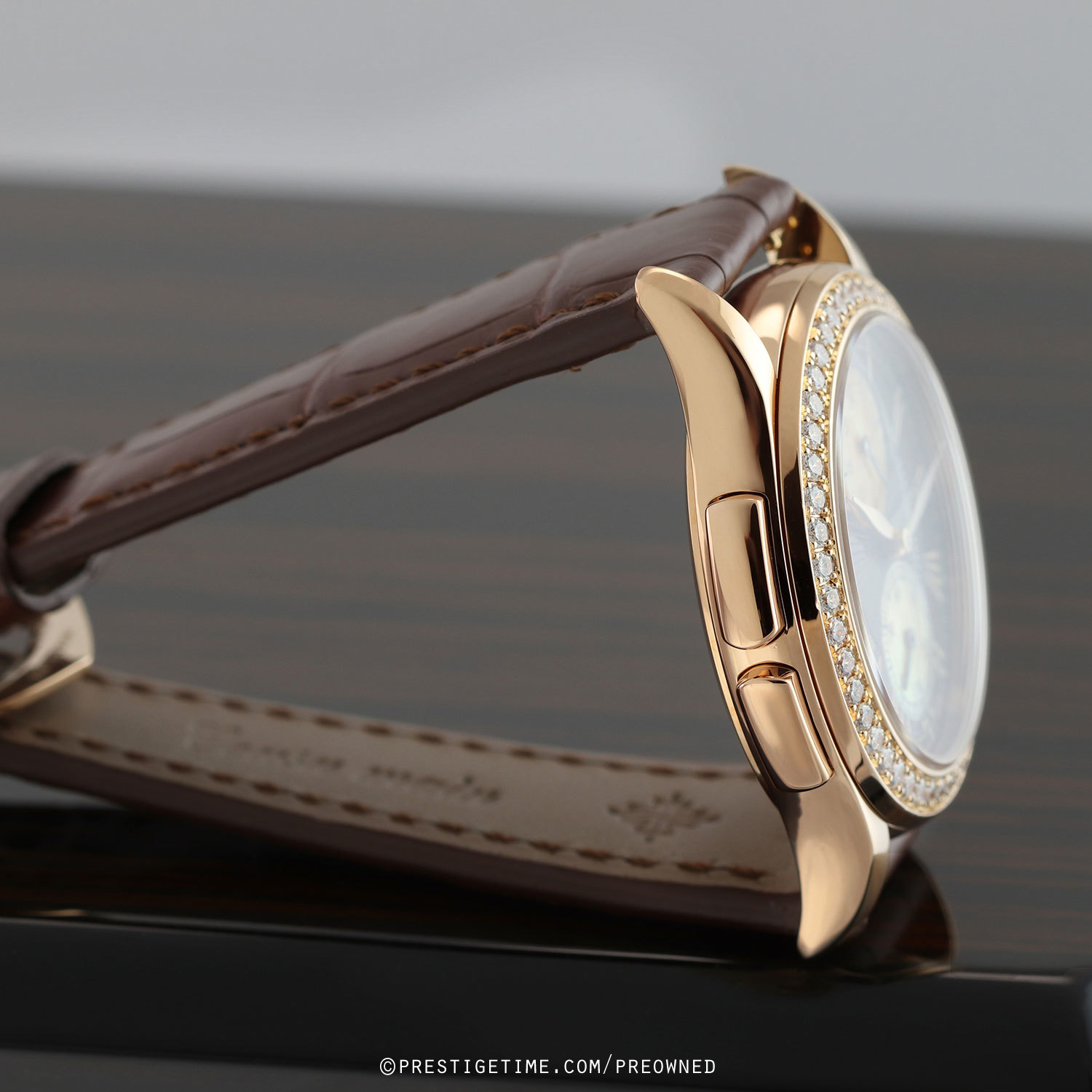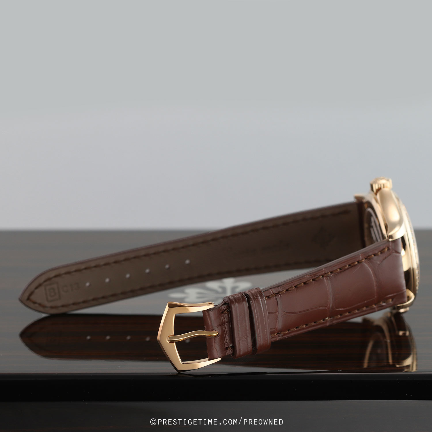 Strap: Fitted on a new Patek Philippe brown alligator leather strap with a polished 18kt rose gold tang buckle. The strap is brand new, crisp & unworn with its full wear lifespan remaining.