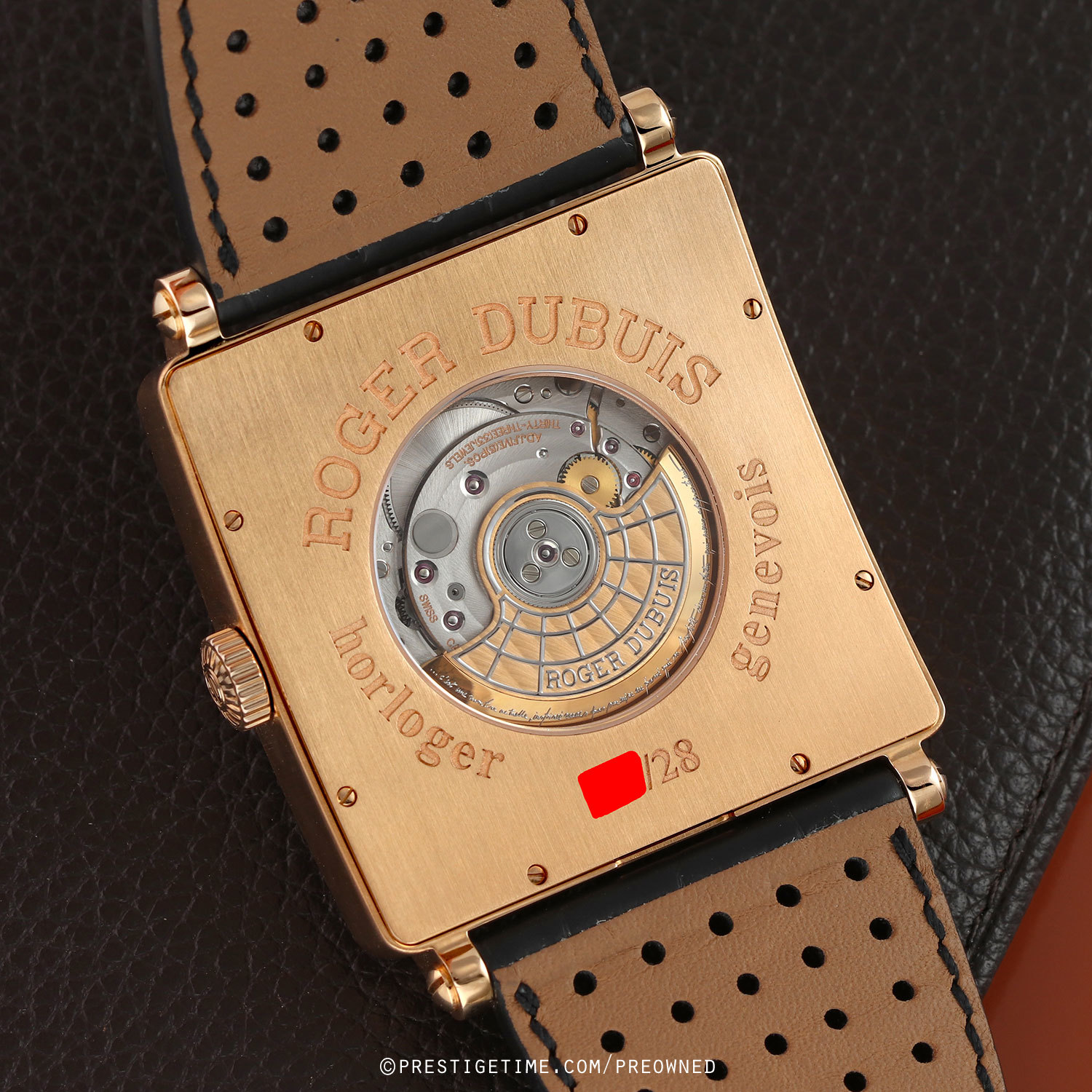 Movement: Powered by a self-winding Roger Dubuis in-house caliber RD14, beats at 28,800 vph (3Hz), contains 33 jewels & has a +/- 48 hours. This movement bears the prestigious