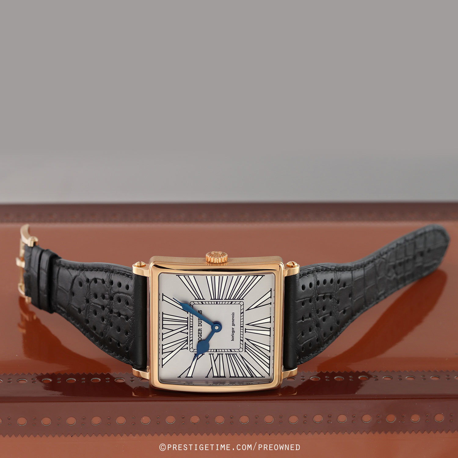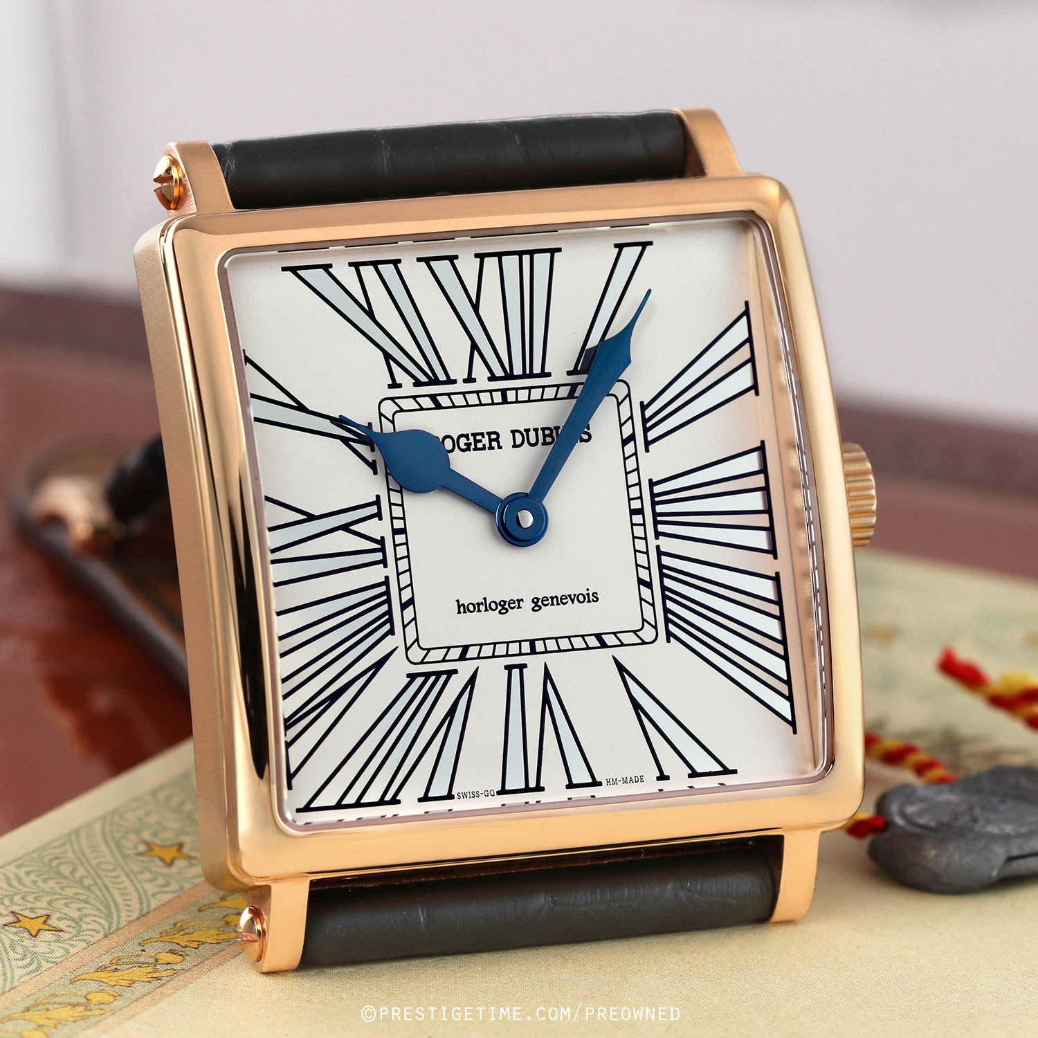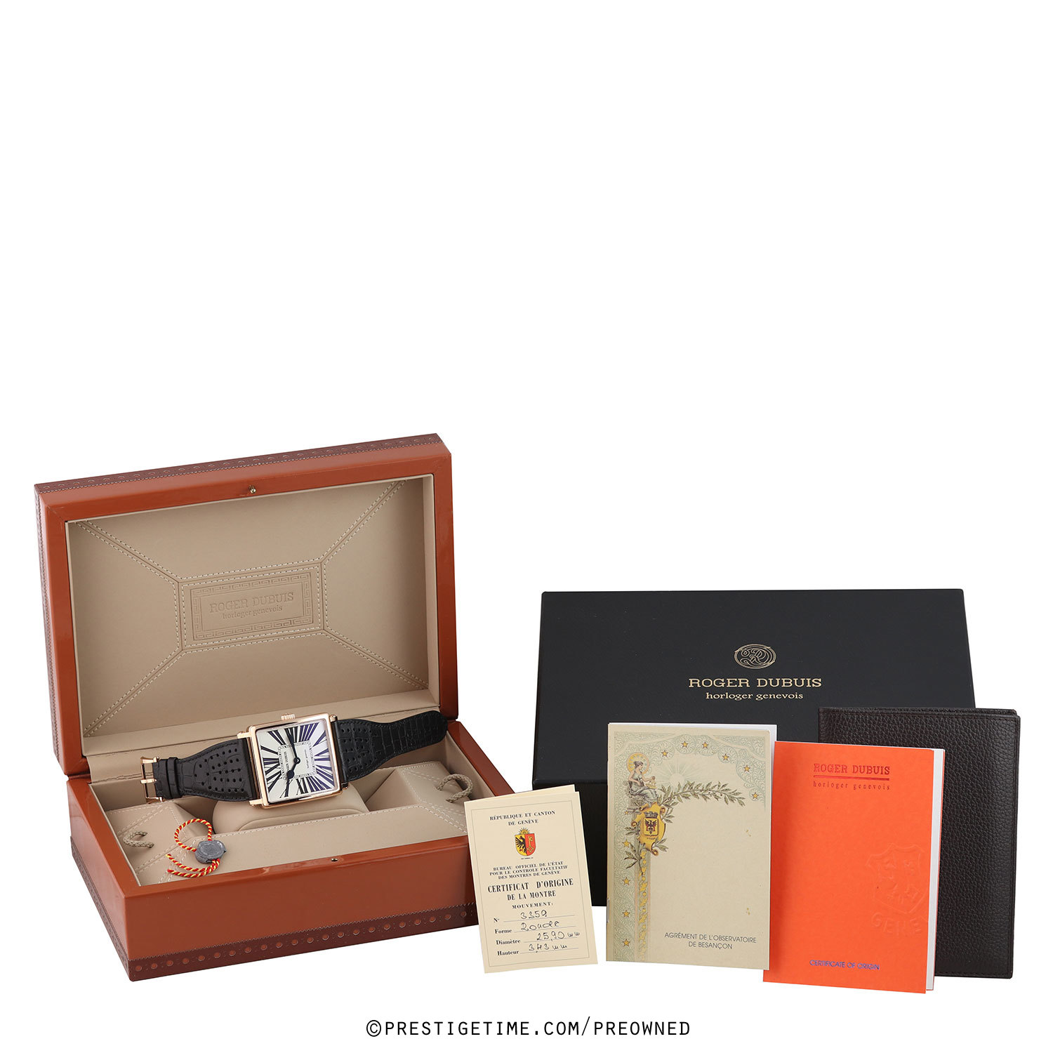 Strap: Fitted on its original Roger Dubuis black alligator perforated leather strap with a solid 18kt rose gold tang buckle. The strap is unworn, in new condition with its full wear lifespan remaining.